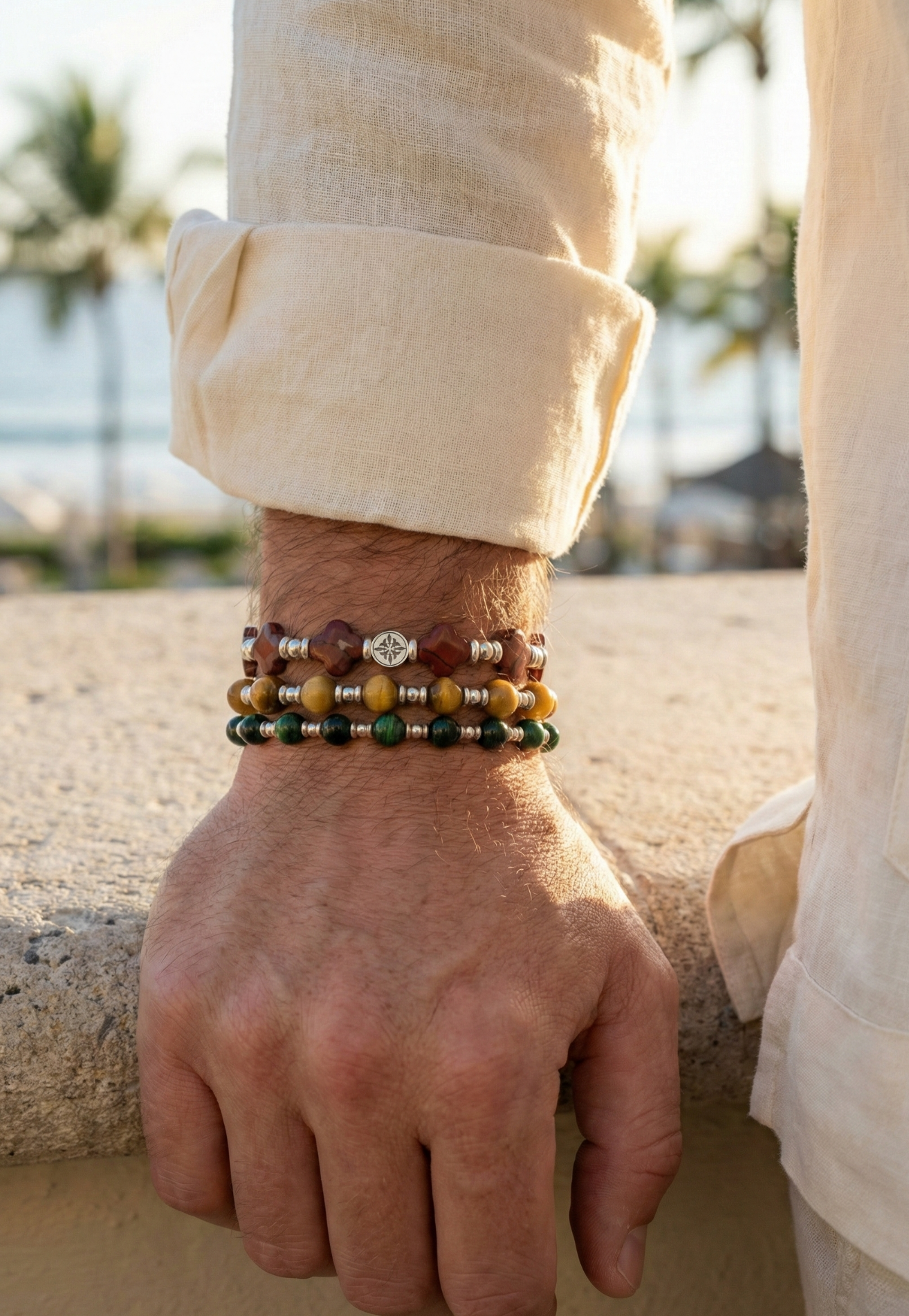 Para abrirlo, tira suavemente de las cuentas más cercanas al broche Armun en direcciones opuestas. Una vez en tu muñeca, ciérralo ajustando las pequeñas cuentas de plata .925 de los extremos, jalando en direcciones opuestas hasta lograr el ajuste perfecto.
