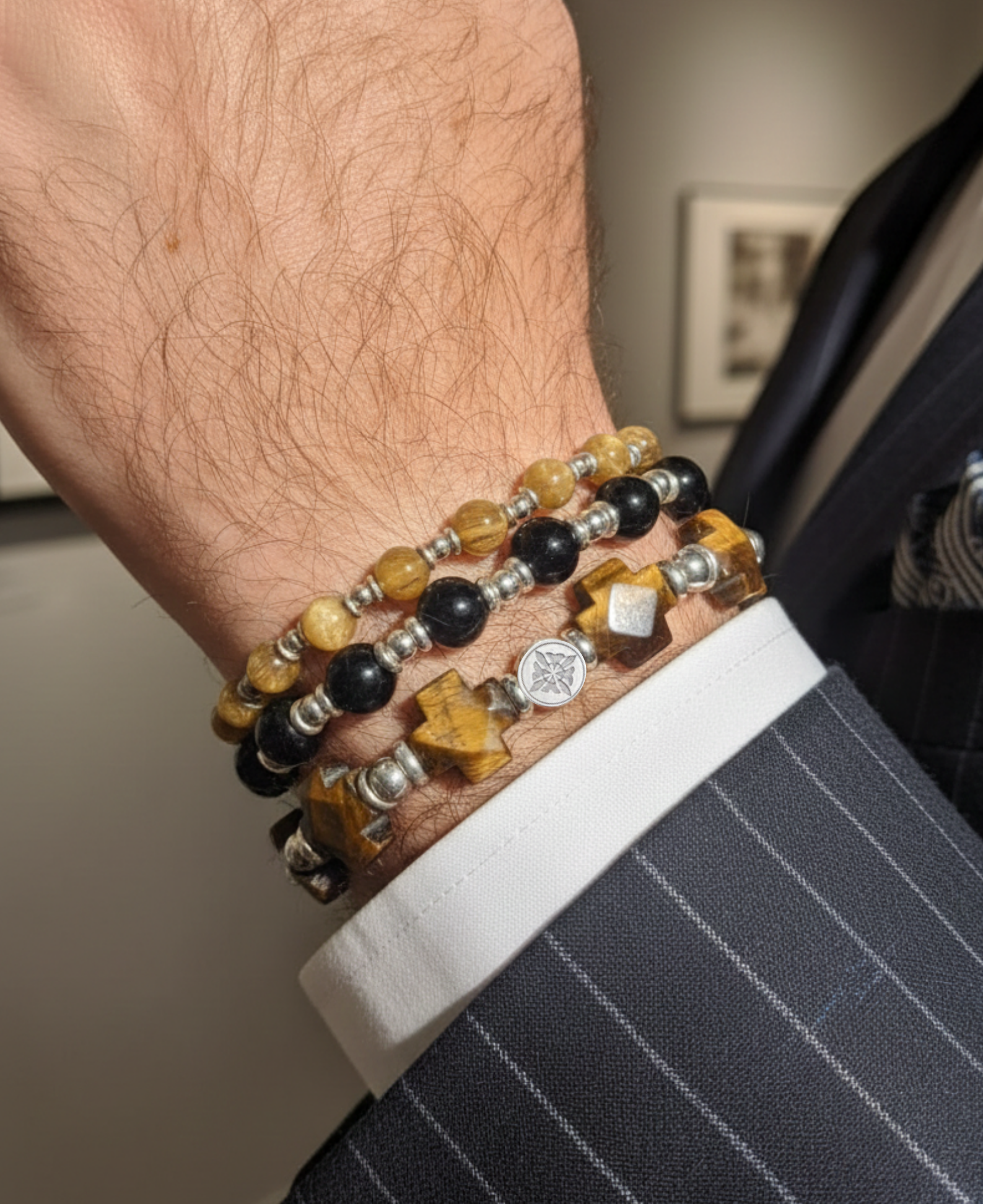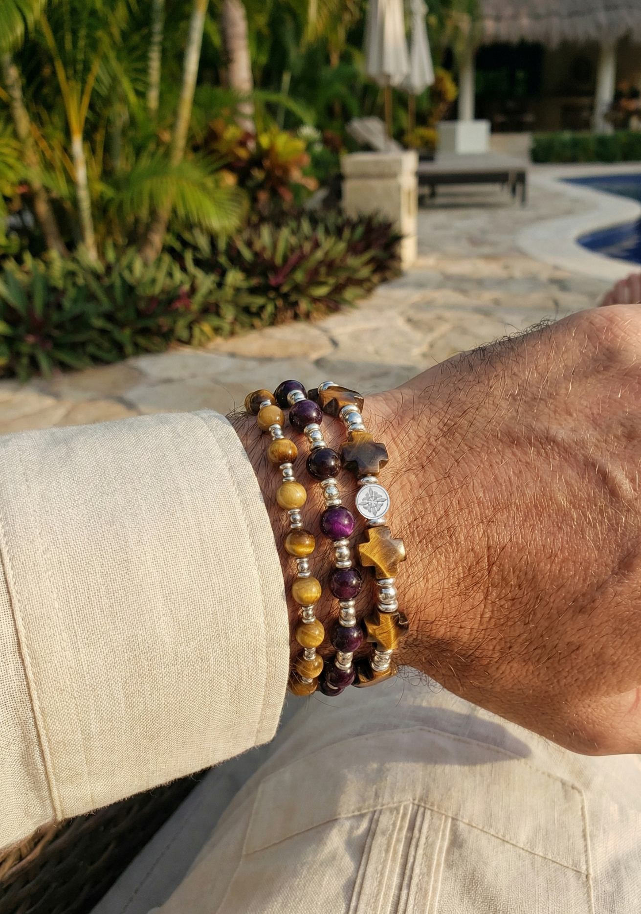 Para abrirlo, tira suavemente de las cuentas más cercanas al broche Armun en direcciones opuestas. Una vez en tu muñeca, ciérralo ajustando las pequeñas cuentas de plata .925 de los extremos, jalando en direcciones opuestas hasta lograr el ajuste perfecto.