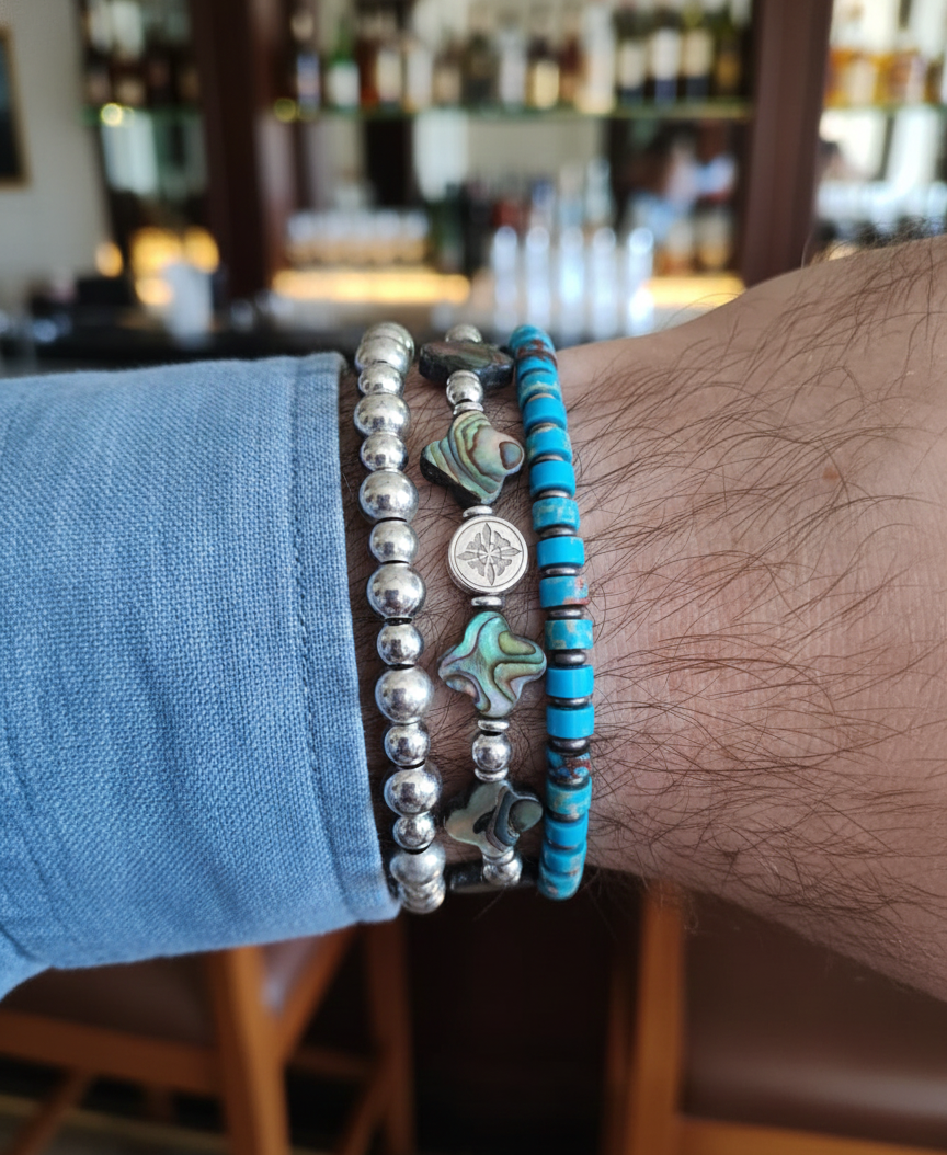 Para abrirlo, tira suavemente de las cuentas más cercanas al broche Armun en direcciones opuestas. Una vez en tu muñeca, ciérralo ajustando las pequeñas cuentas de plata .925 de los extremos, jalando en direcciones opuestas hasta lograr el ajuste perfecto.
