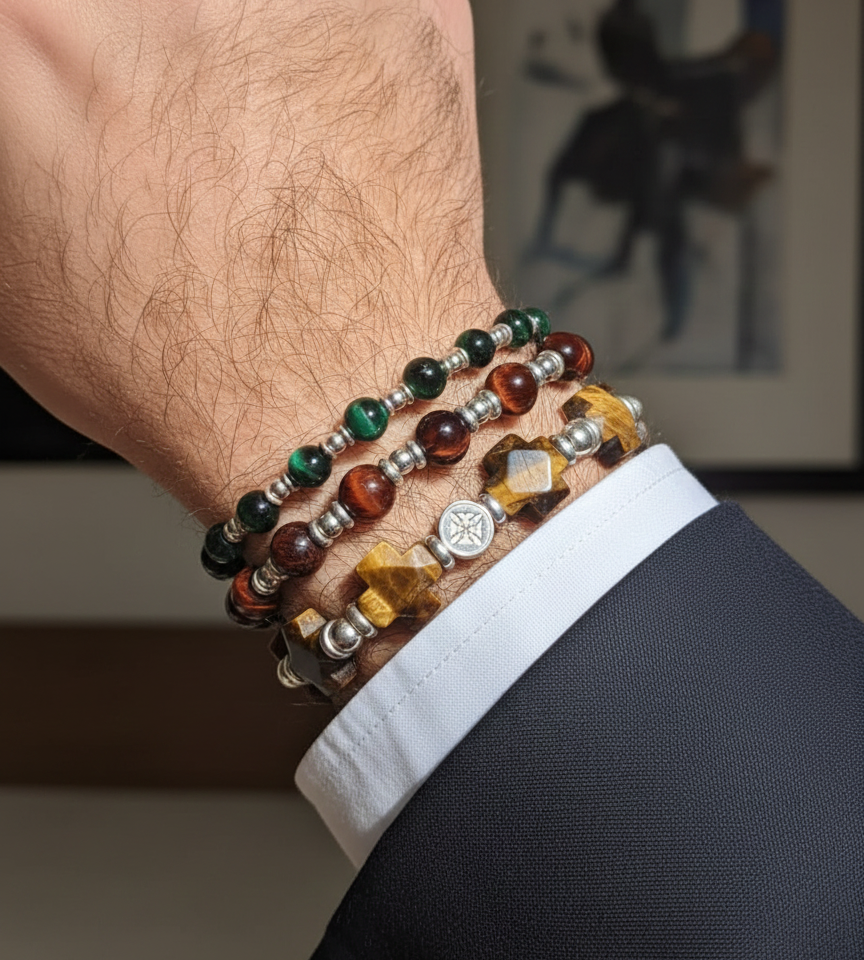 Brazalete Exclusivo Cruz Ojo Tigre Café