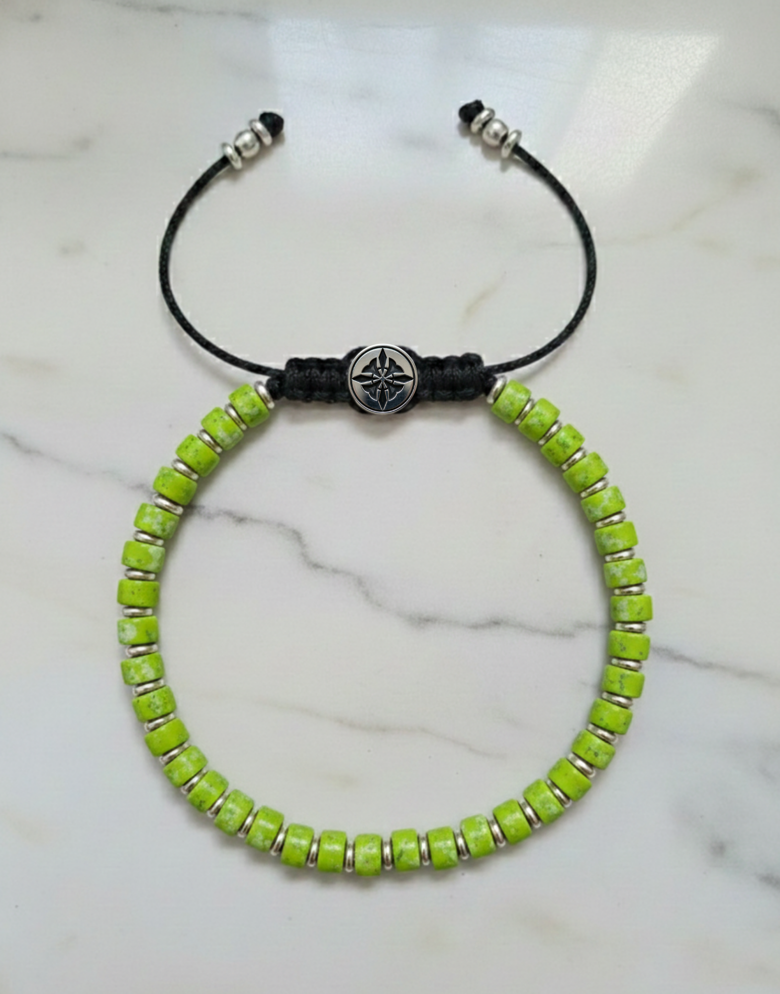 Para abrirlo, tira suavemente de las cuentas más cercanas al broche Armun en direcciones opuestas. Una vez en tu muñeca, ciérralo ajustando las pequeñas cuentas de plata .925 de los extremos, jalando en direcciones opuestas hasta lograr el ajuste perfecto.